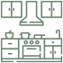 La cuisine tout équipée et lumineuse s’ouvre sur une terrasse privative sans vis-à-vis.